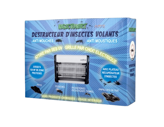 Une lampe UV intégrée (remplaçable si nécessaire) à haute fréquence, émettant une lumière bleutée très attractive pour les insectes volants.